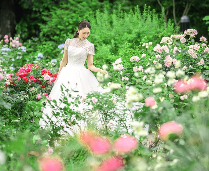 穏やかな春に満ち溢れた庭園での乾杯やフォトタイムは、まるで映画のワンシーンのよう。